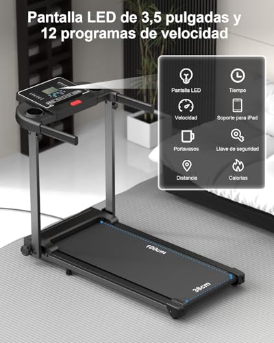 Pantalla LCD de 3.5 pulgadas: La cinta de correr plegable con control LCD de 3.5 pulgadas muestra claramente el tiempo, la distancia, las calorías quemadas y la velocidad, lo que le permite monitorear fácilmente su progreso durante el ejercicio.Cinta de correr incluye 12 programas automáticos preestablecidos y tres modos de cuenta regresiva: tiempo, distancia y calorías, lo que hace que su ejercicio sea más variado y motivador.